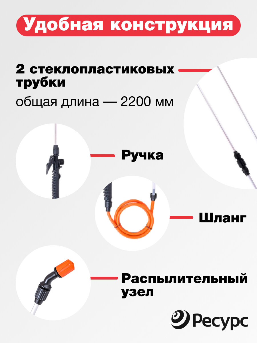 | Особенности | пригоден для химикатов, регулировка распыления, спусковой клапан давления, телескопическая штанга |