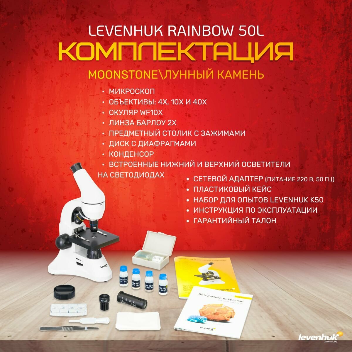 Микроскоп Levenhuk Rainbow D50L PLUS, 2 Мпикс, Moonstone\Лунный камень интересное: