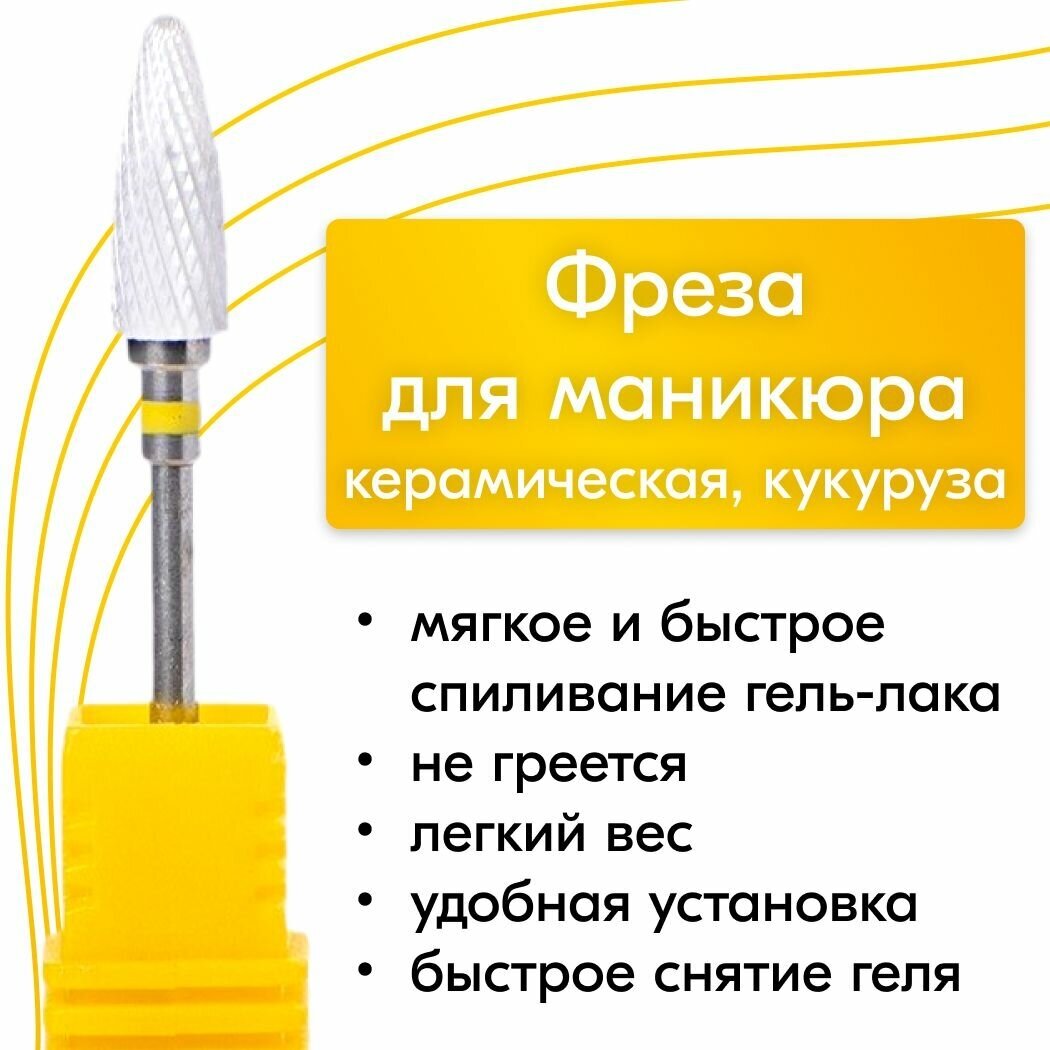 NailsProfi, Фреза желтая кукуруза керамическая для аппаратного маникюра и педикюра, мягкая обработка интересное: