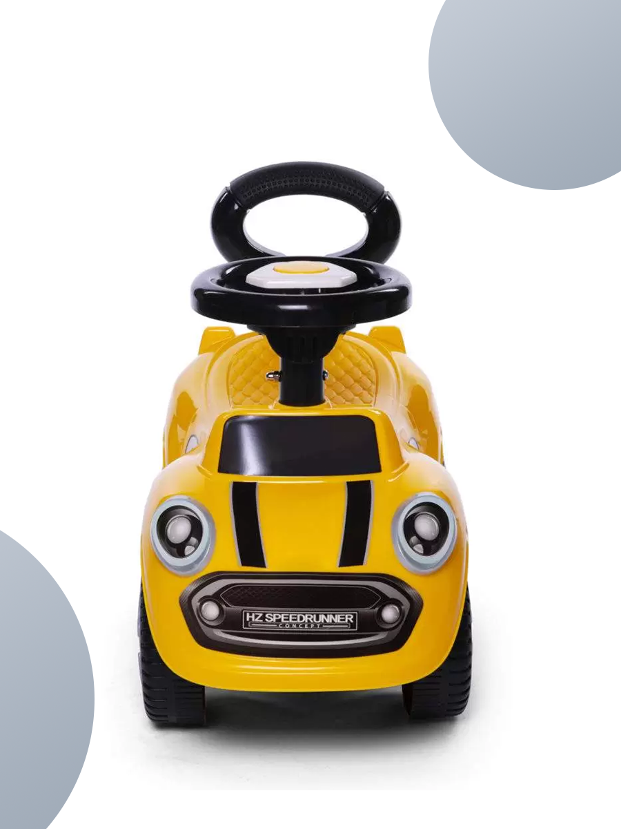 | Дополнительная информация | руль музыкальный 16 см: 3 веселые песни на английском языке и сигнал; диаметр колес 12 см; высота до сидения 20 см |