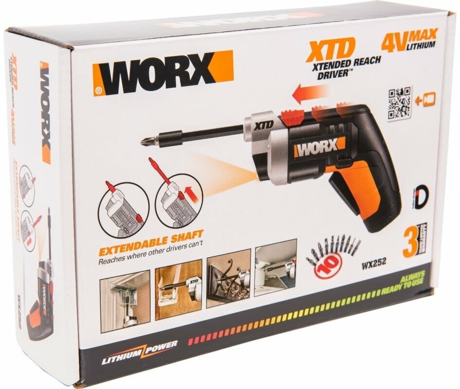 Отвертка аккумуляторная Worx WX252 4V XTD, 4 В Li-ion 1.5 Ач