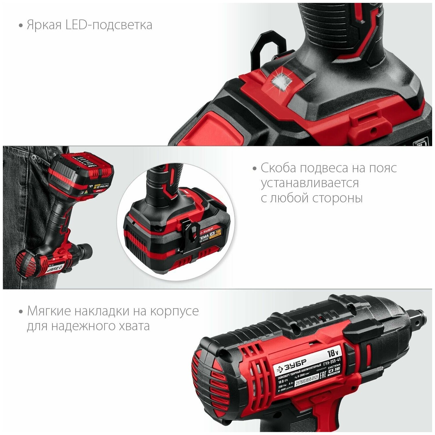 ЗУБР С1-18, 18 В, 250 Н·м, без АКБ, гайковерт ударный (ГУЛ-255)