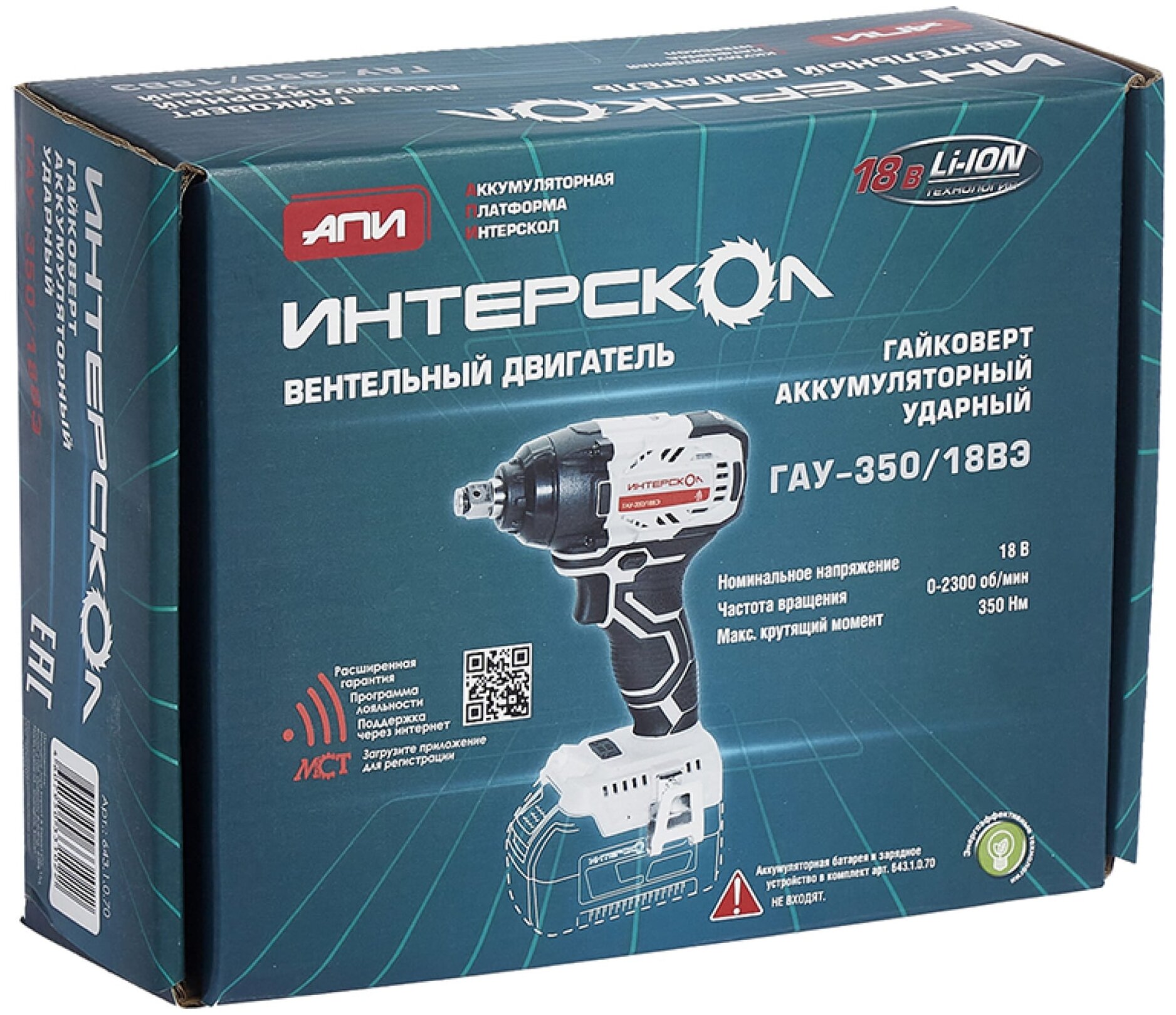 Ударный гайковерт ИНТЕРСКОЛ ГАУ-350/18ВЭ 643.1.0.70,от аккумулятора, АПИ, 350 Нм, без АКБ и ЗУ