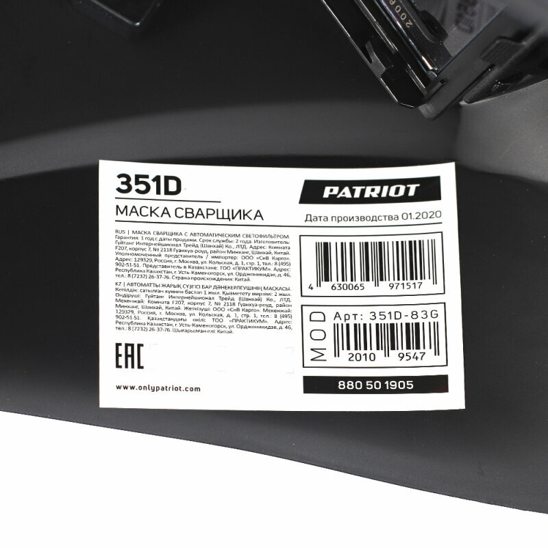 Маска сварщика Patriot 351 D / 90х35 мм окно / степень затемнения DIN 9-13 / защитная маска для сварки / шлем интересное: