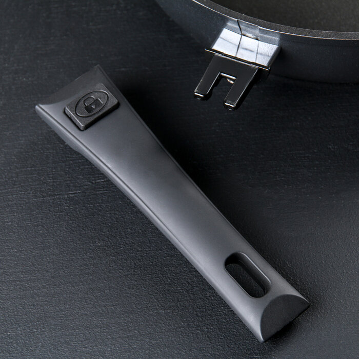 Можно использовать в духовке Вместительная Надежная ручка, снимается при необходимости |