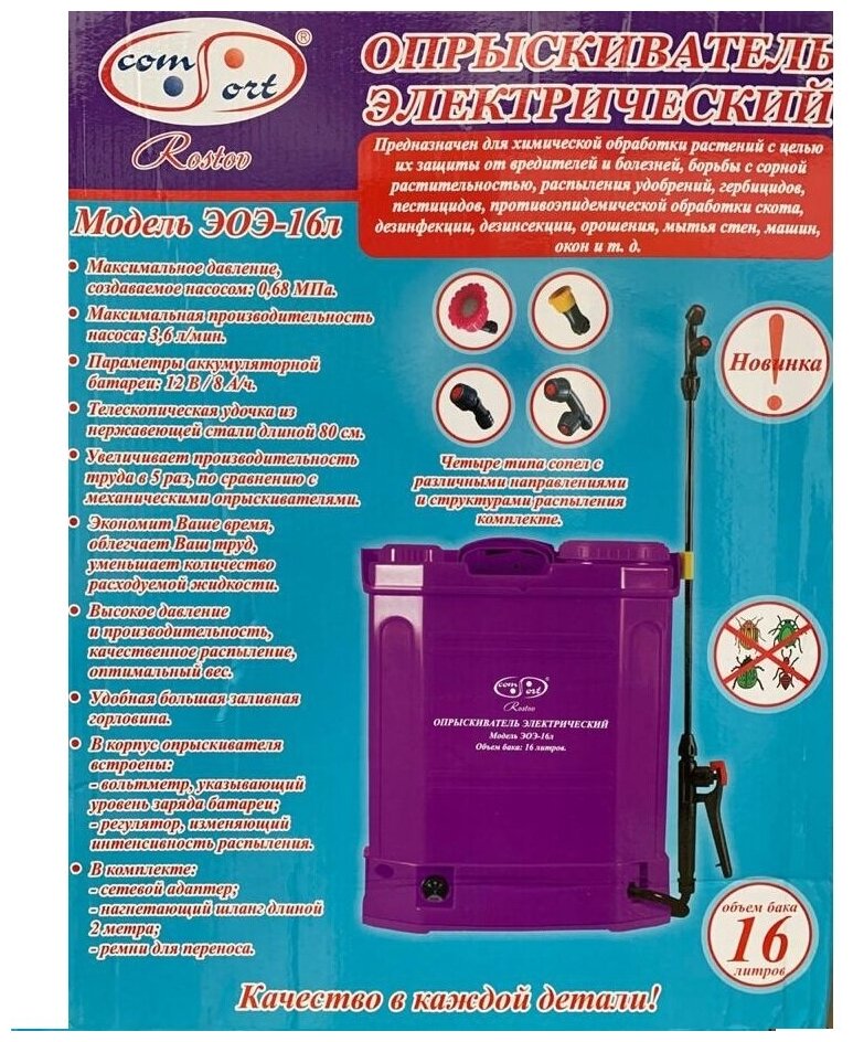 Ниже Вы можете прочитать отзывы на Аккумуляторный опрыскиватель Comfort ЭОЭ-16, 16 л, ознакомится с подробными характеристиками, посмотреть интересные обзоры и фотографии на Аккумуляторный опрыскиватель Comfort ЭОЭ-16, 16 л.