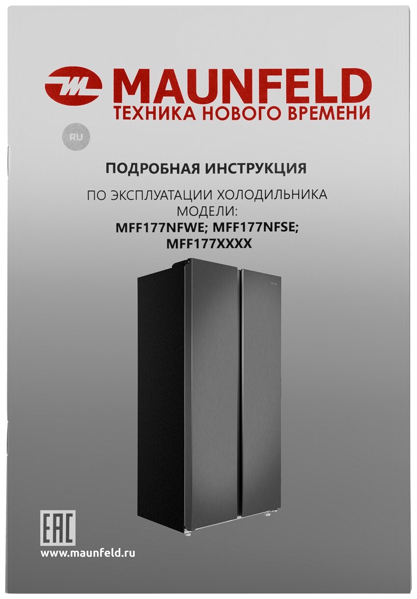 Холодильник с инвертором MAUNFELD MFF177NFSE, Side by Side, Total No Frost, 430 литров