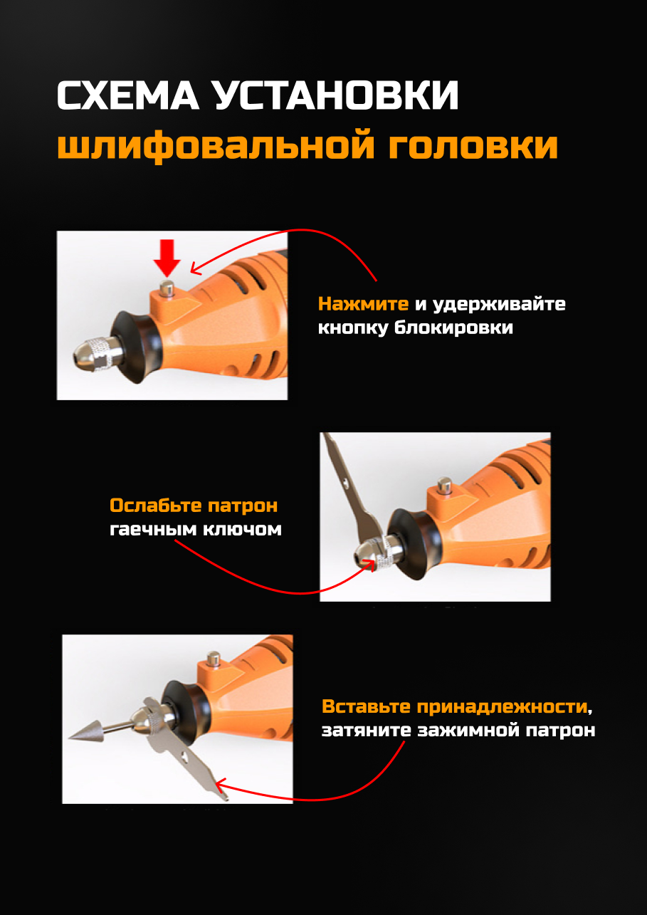 | Комплектация | гравер - 1шт., ключ - 1шт., щетки - 2шт., инструкция на русском языке - 1шт. |
