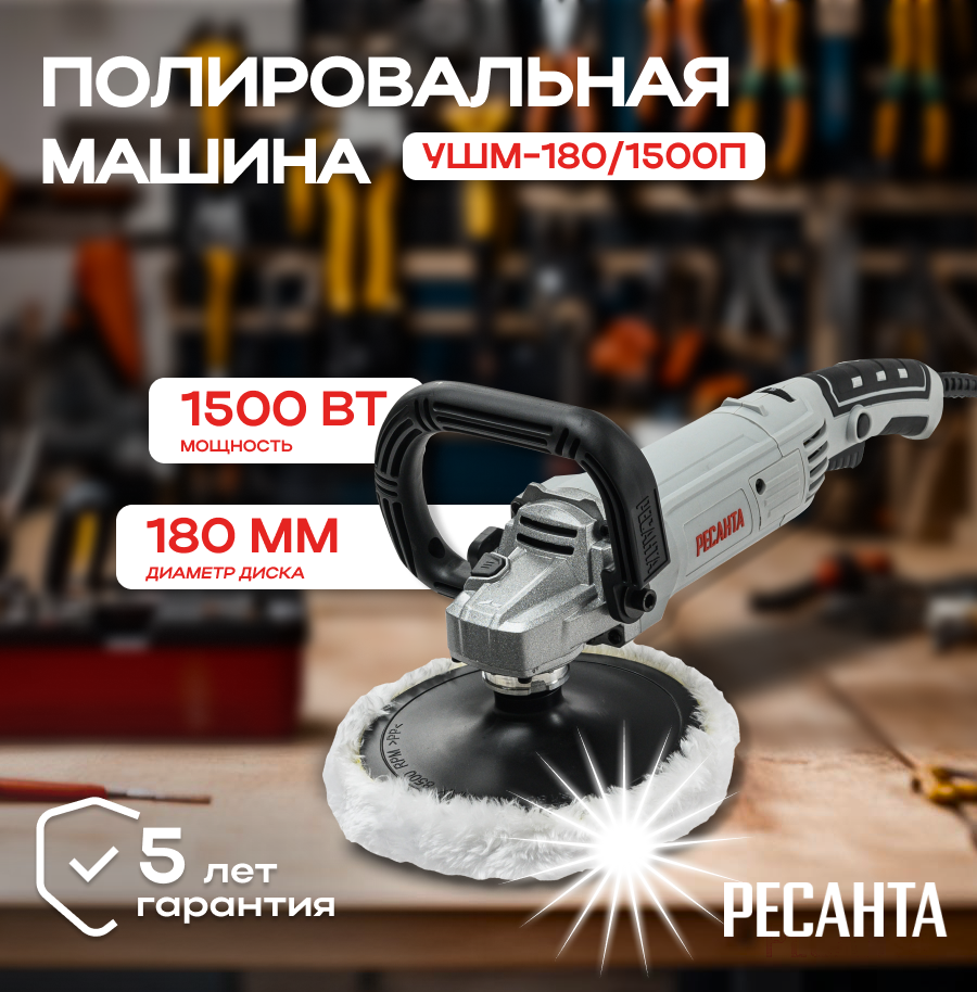 Полировальная машина (углошлифовальная) УШМ-180/1500П Ресанта интересное: