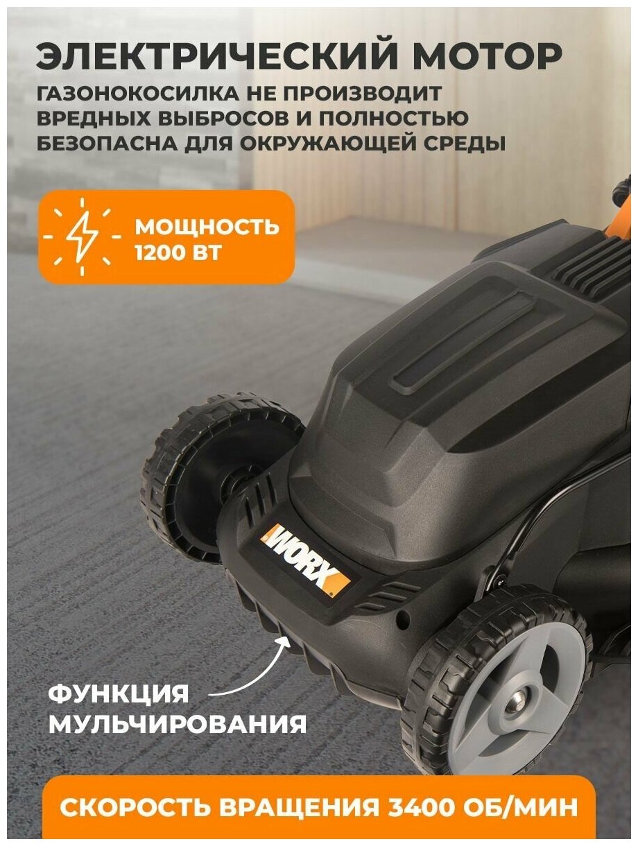 Газонокосилка электрическая WORX WG713E, 1200Вт, 34 см