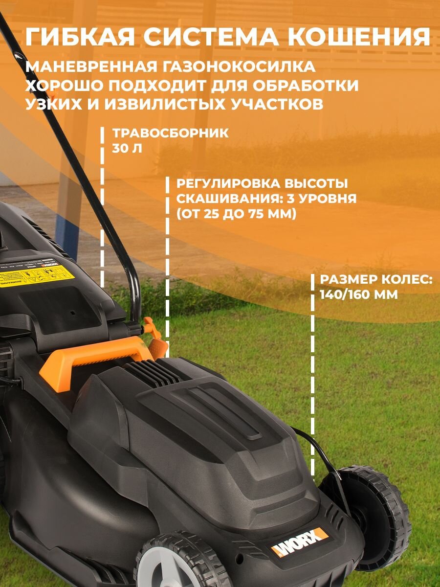 СохранитьГазонокосилка сетевая WORX WG713E, 34 см, 1200Вт, коробка интересное: