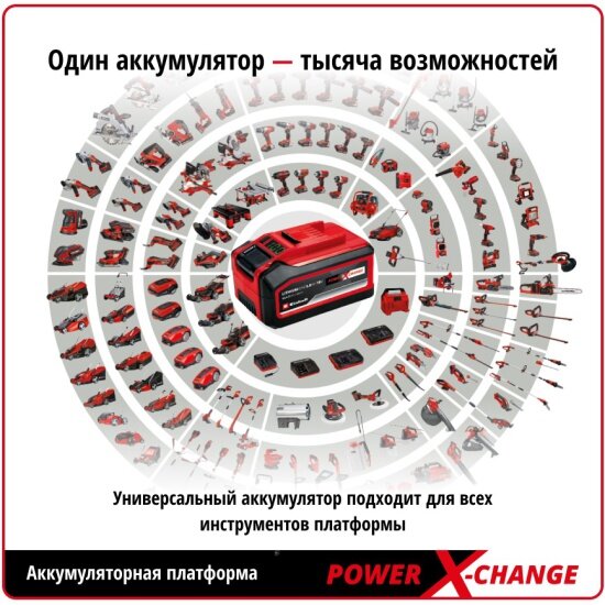 Когда не пользуешься газонокосилкой, аккумуляторы можно использовать с другим инструментом этого бренда. |