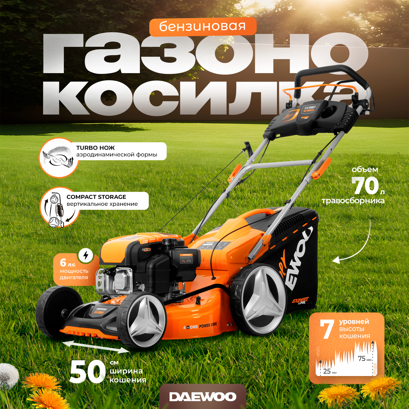 Газонокосилка бензиновая DAEWOO DLM 5100SP (6лс, 50см) интересное: