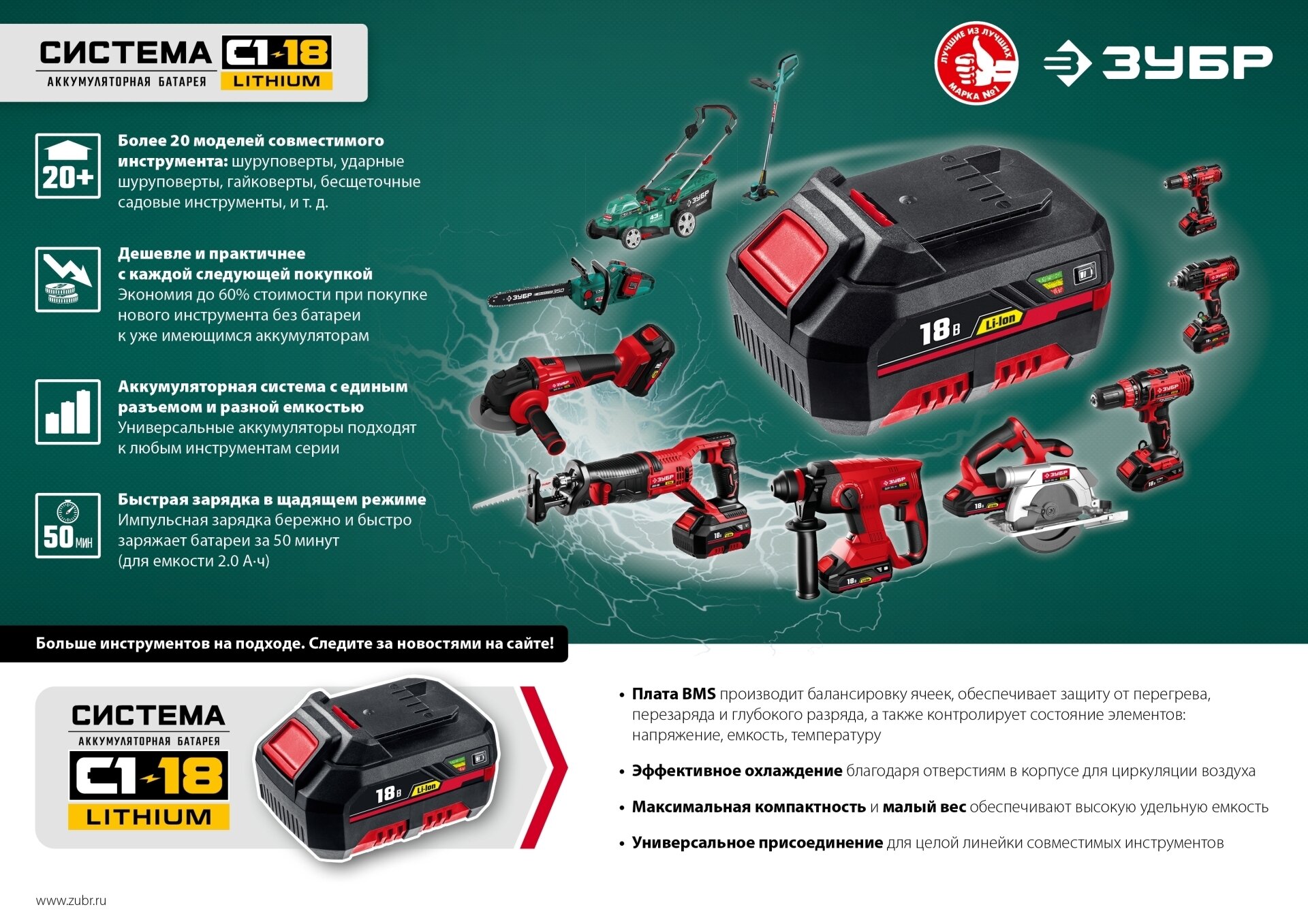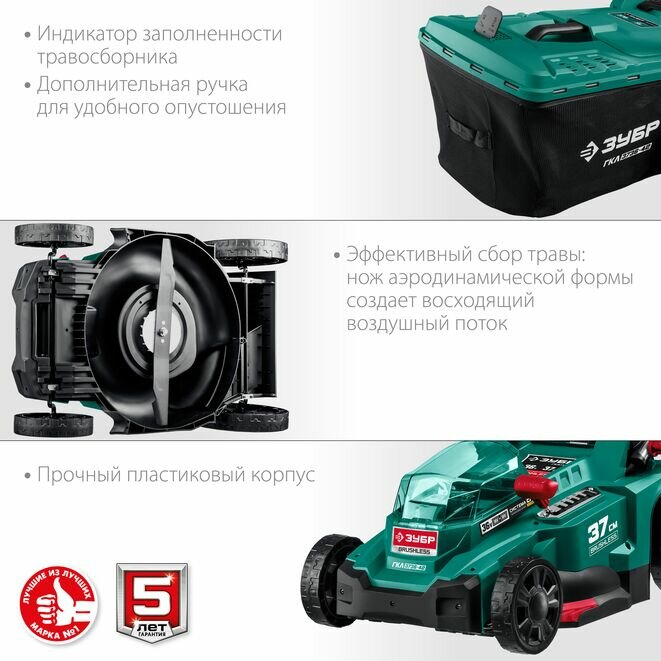 ЗУБР С1-18, 36 В, 37 см, 2х18 В АКБ (4 А·ч), бесщеточная газонокосилка (ГКЛ-3736-42)