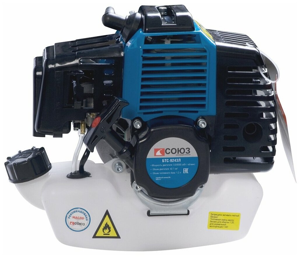 БТС-9243Л Бензотриммер СОЮЗ 43см3, нож/леска, 3кВт/4,0 л.с., легкий старт СОЮЗ