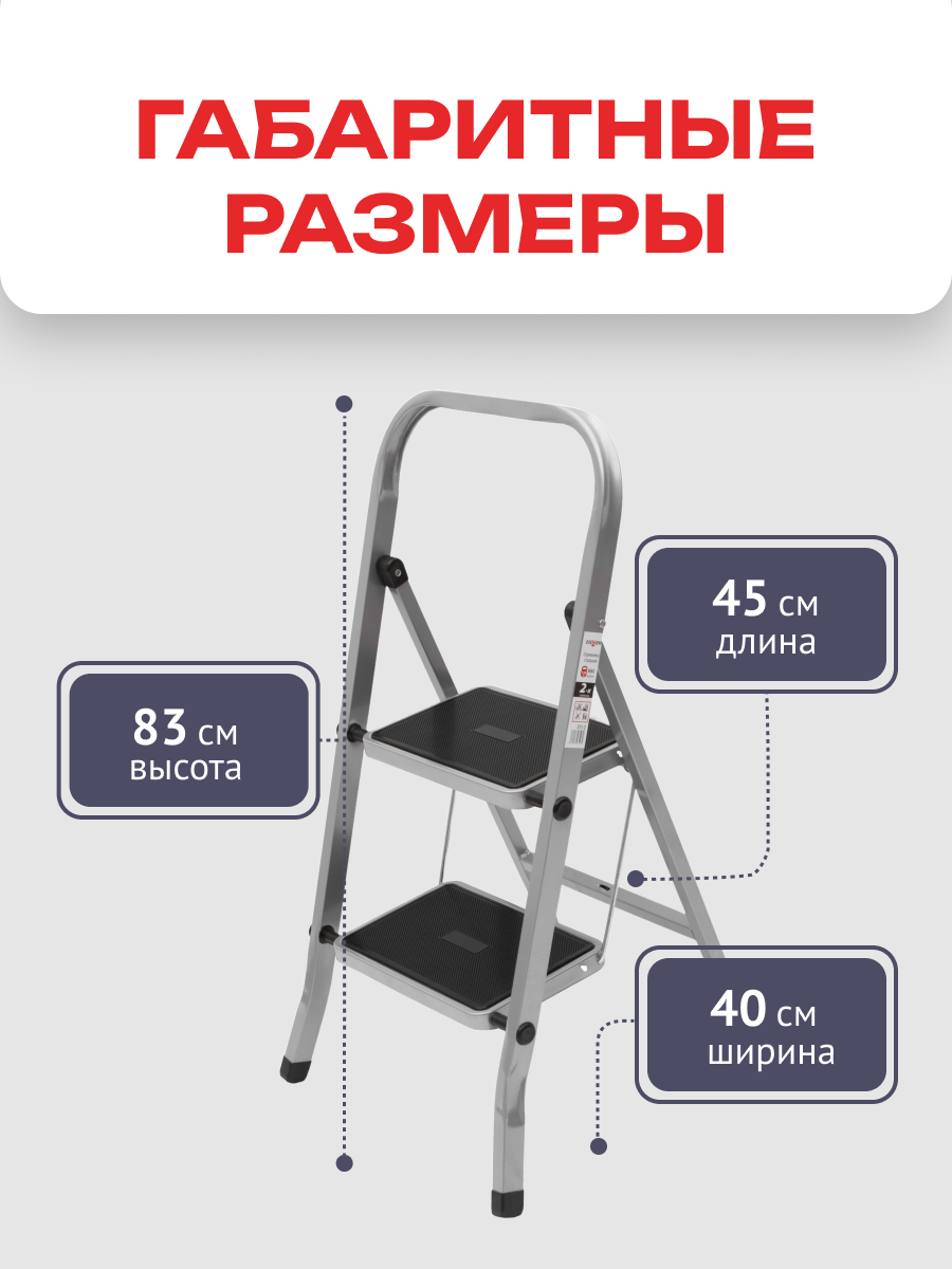Стремянка Zalger стальная, 2 широкие ступени, с ковриком (511-2)