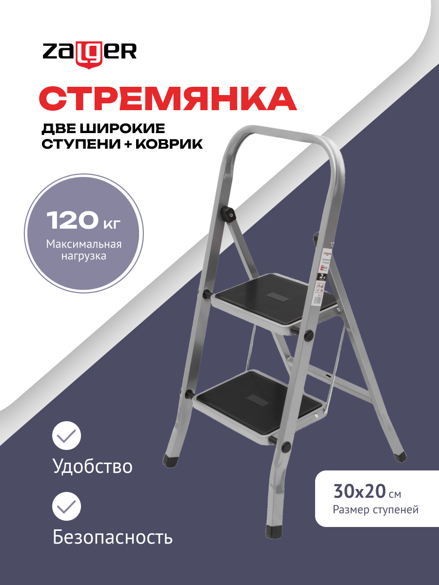 Купить Стремянка Zalger, 2 широкие ступени, с ковриком, сталь, арт. 511-2