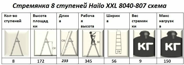 Стремянка Hailo XXL (8040-807), 8 ст.
