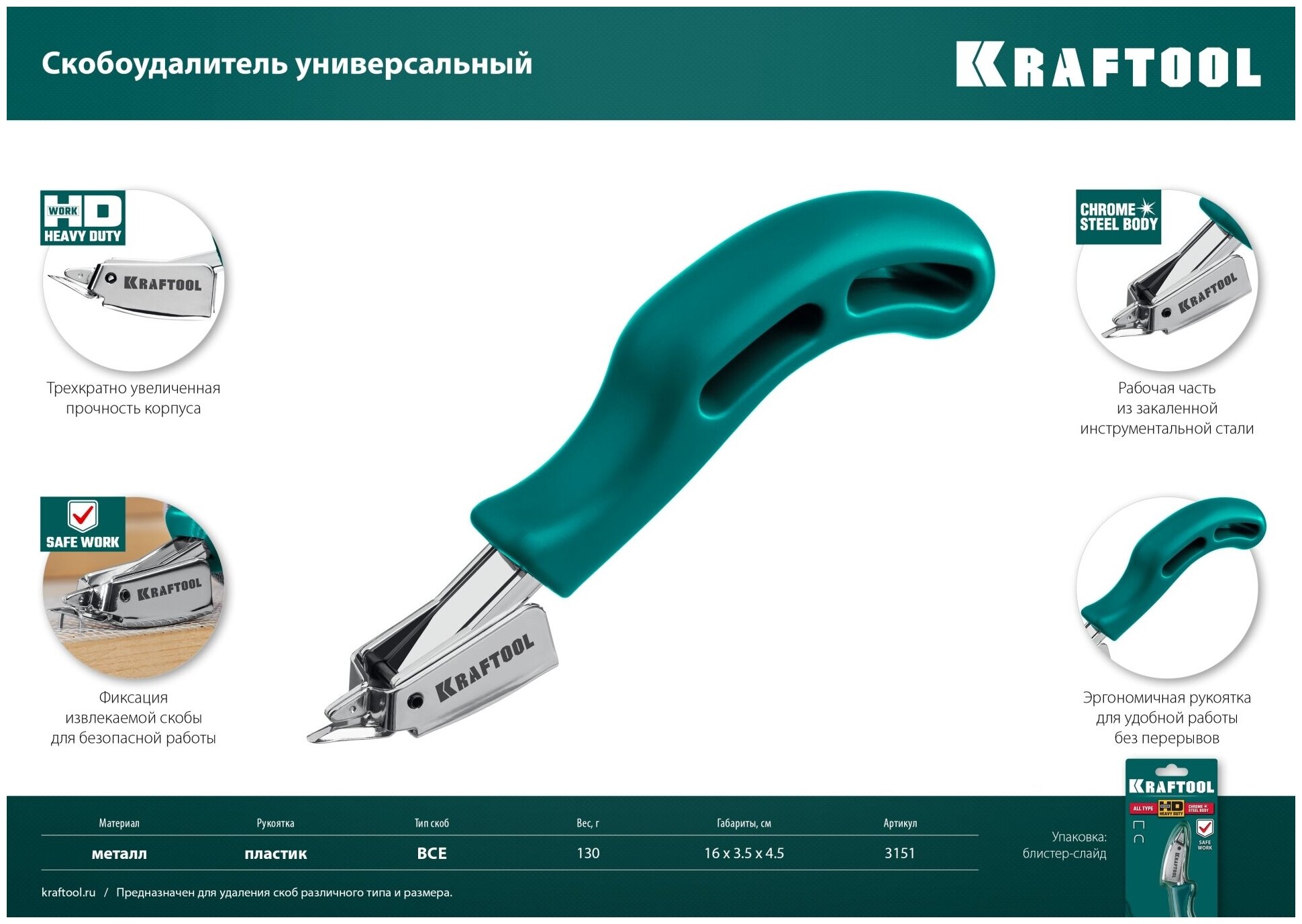 KRAFTOOL универсальный стальной скобоудалитель (3151)