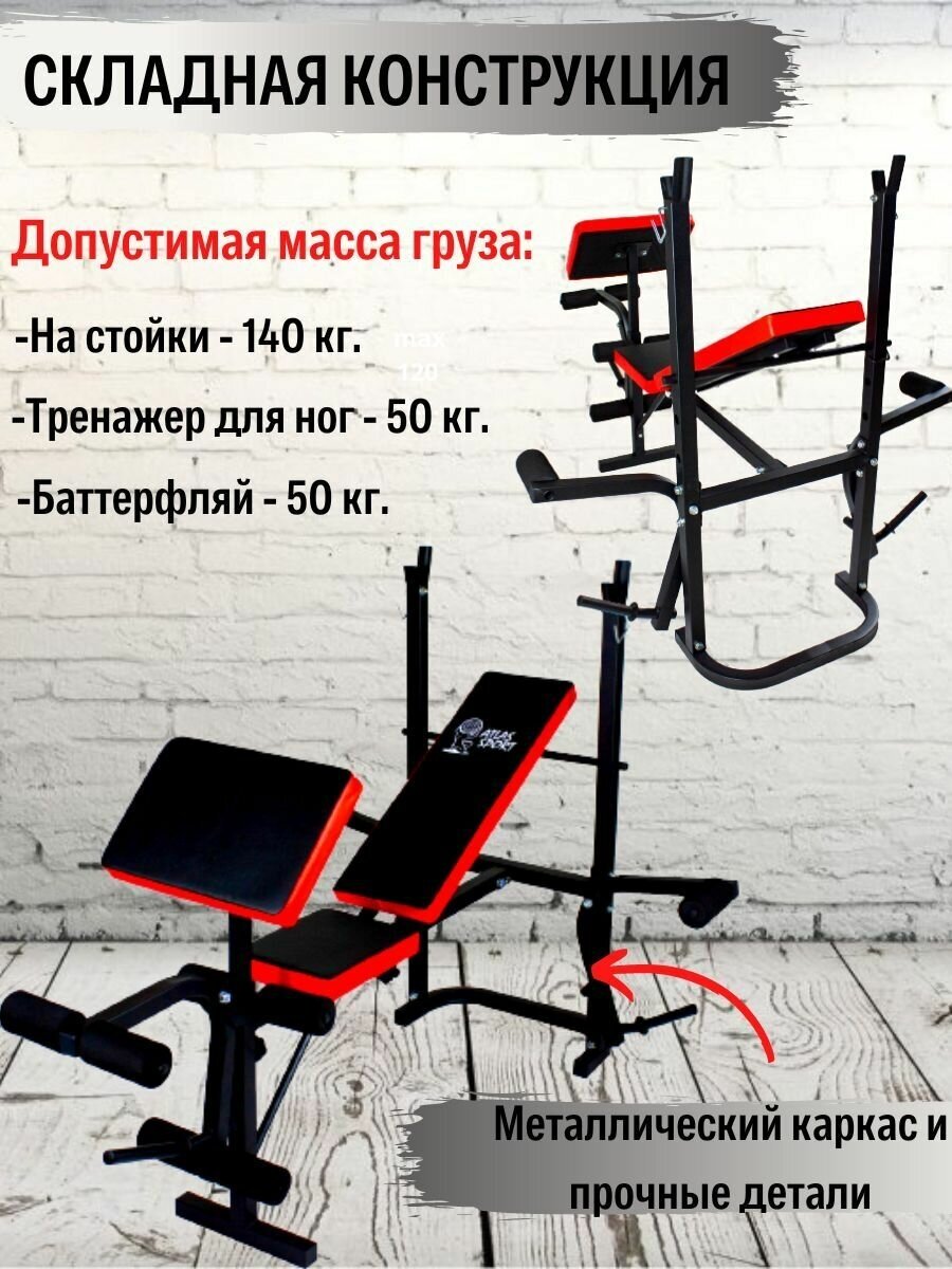 Скамья Atlas Sport 1050 складная для жима штанги и гантелей , скамья спортивная универсальная для тренировок дома, фитнес тренажер интересное: