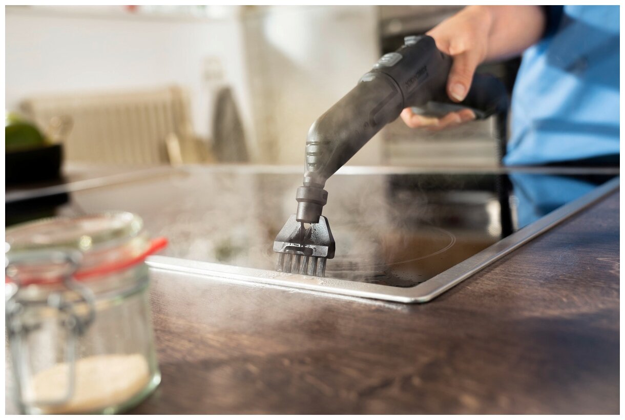 | Дополнительная информация | в комплекте: комплект для уборки пола EasyFix: 2 удлинительные трубки (2x0,5 м), насадка для пола, 2 микроволоконные салфетки с липучкой; накладка для чистки ковров; паровой шланг с пистолетом; ручная насадка; микроволоконная обтяжка для ручной насадки, 1 шт; точечное сопло; мощное сопло; круглая щётка (малая), 1 шт; круглая щётка (большая), 1 шт; щётка для очистки швов, 1 шт; картридж для защиты от накипи |