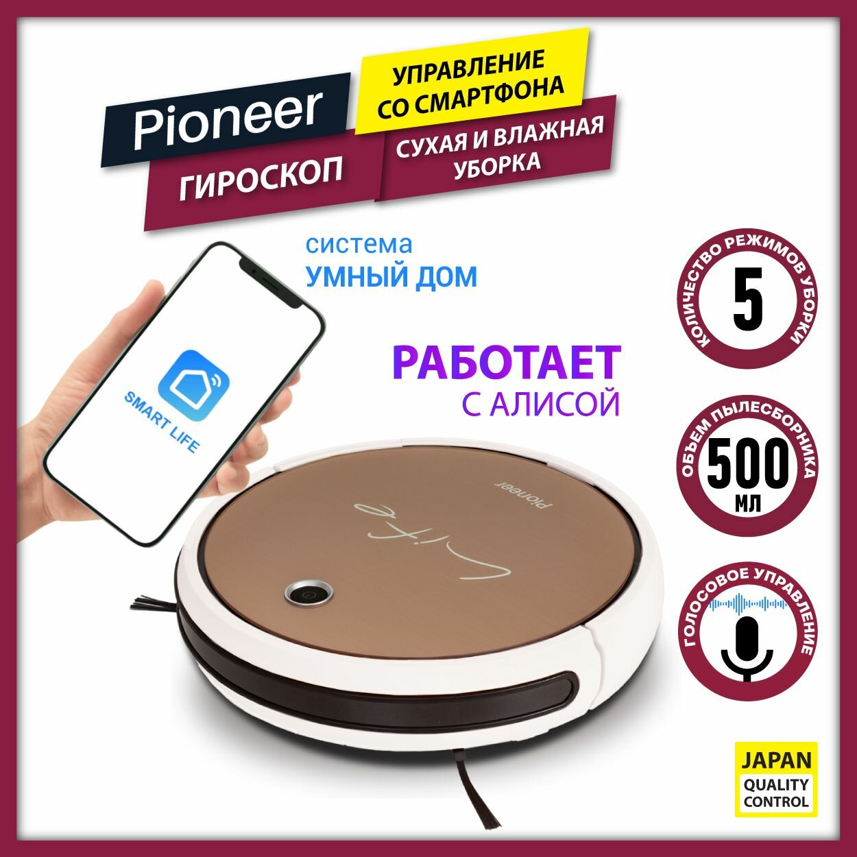 Робот-пылесос Pioneer 2 в 1, сухая и влажная уборка, 5 режимов, гироскоп, голосовой помощник, смартфон-управление Smart life