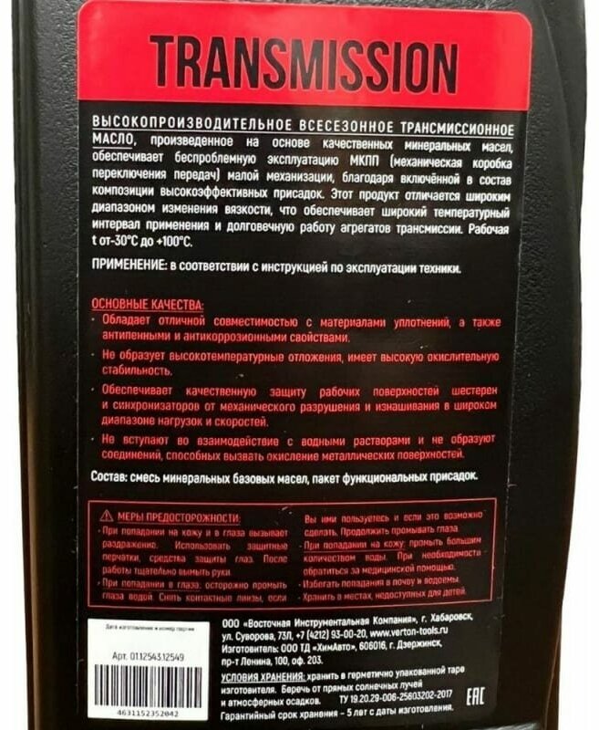 Трансмиссионное масло VERTON Transmission SAE 80W90, до -30С, 0.946 л 01.12543.12549 интересное: