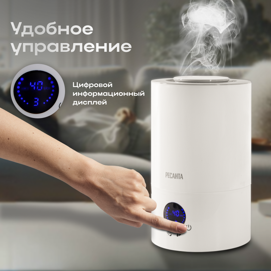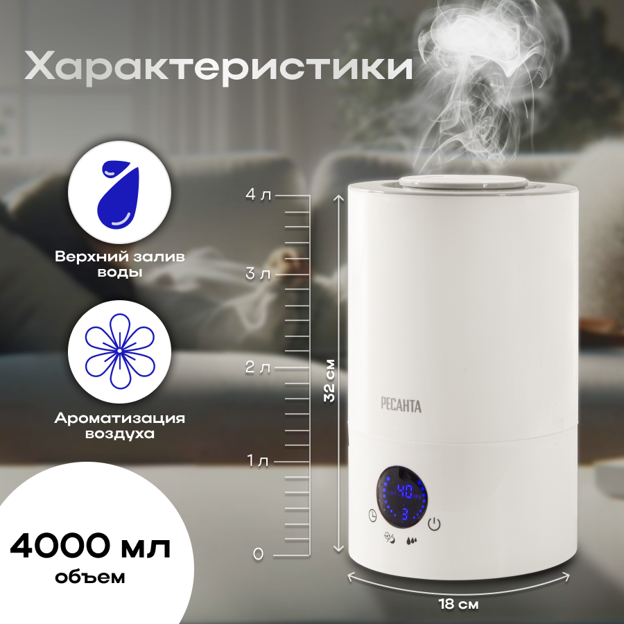 Увлажнитель воздуха ультразвуковой Ресанта УВ-4, 4л, белый