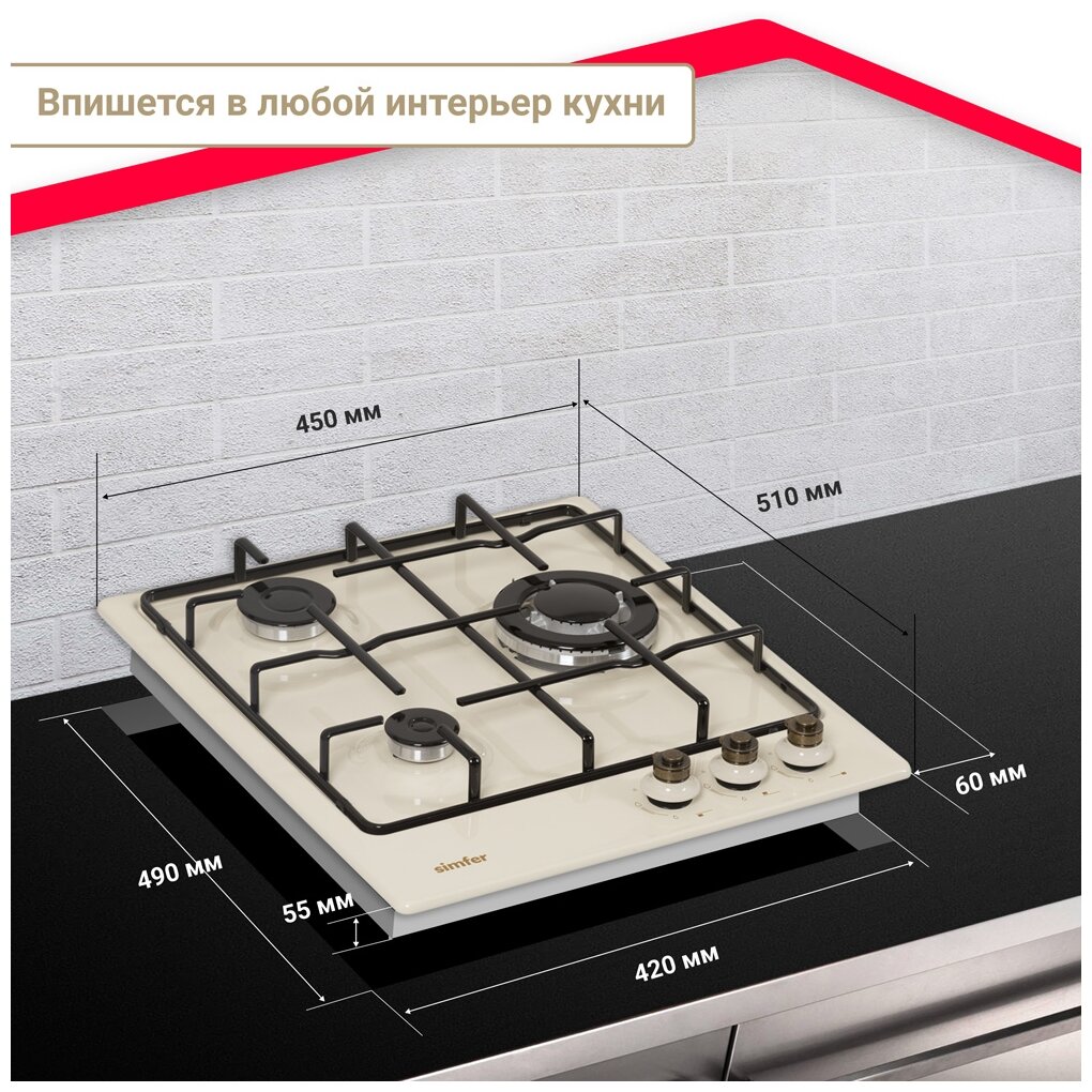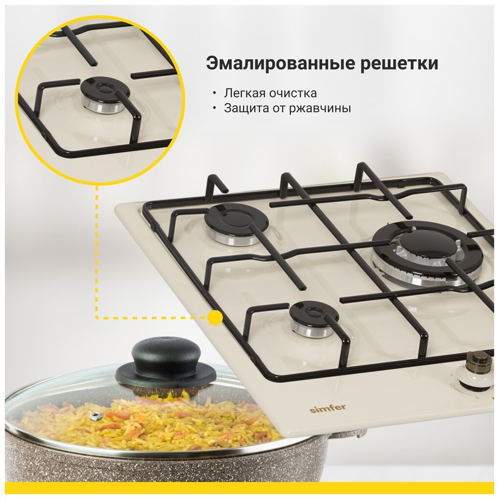 Газовая варочная панель Simfer H45V35O517, независимая, бежевый