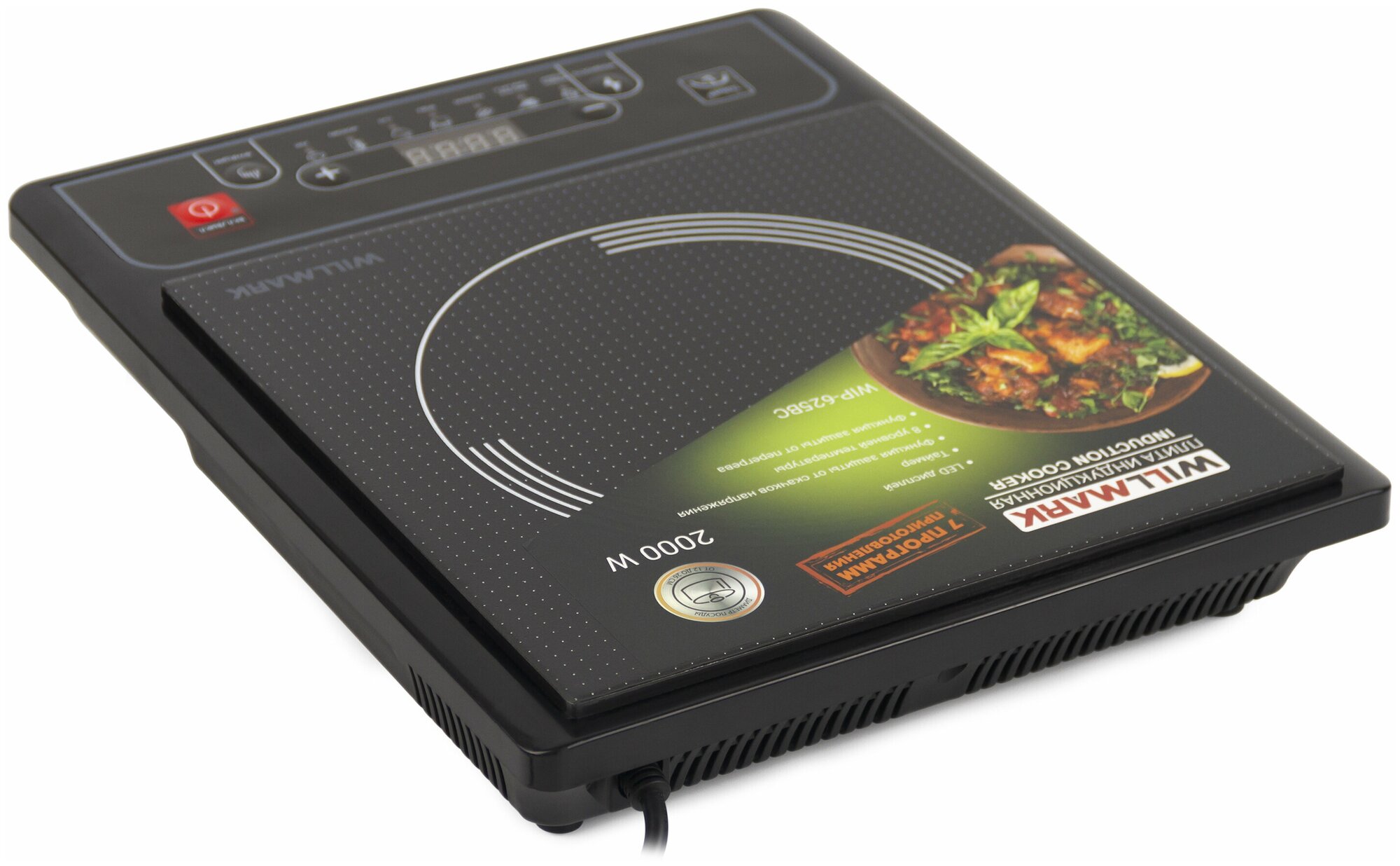 Плитка индукционная WILLMARK WIP-625BC, 1 конф. черная, 2000 Вт, 8 уровней темп. 7 программ интересное: