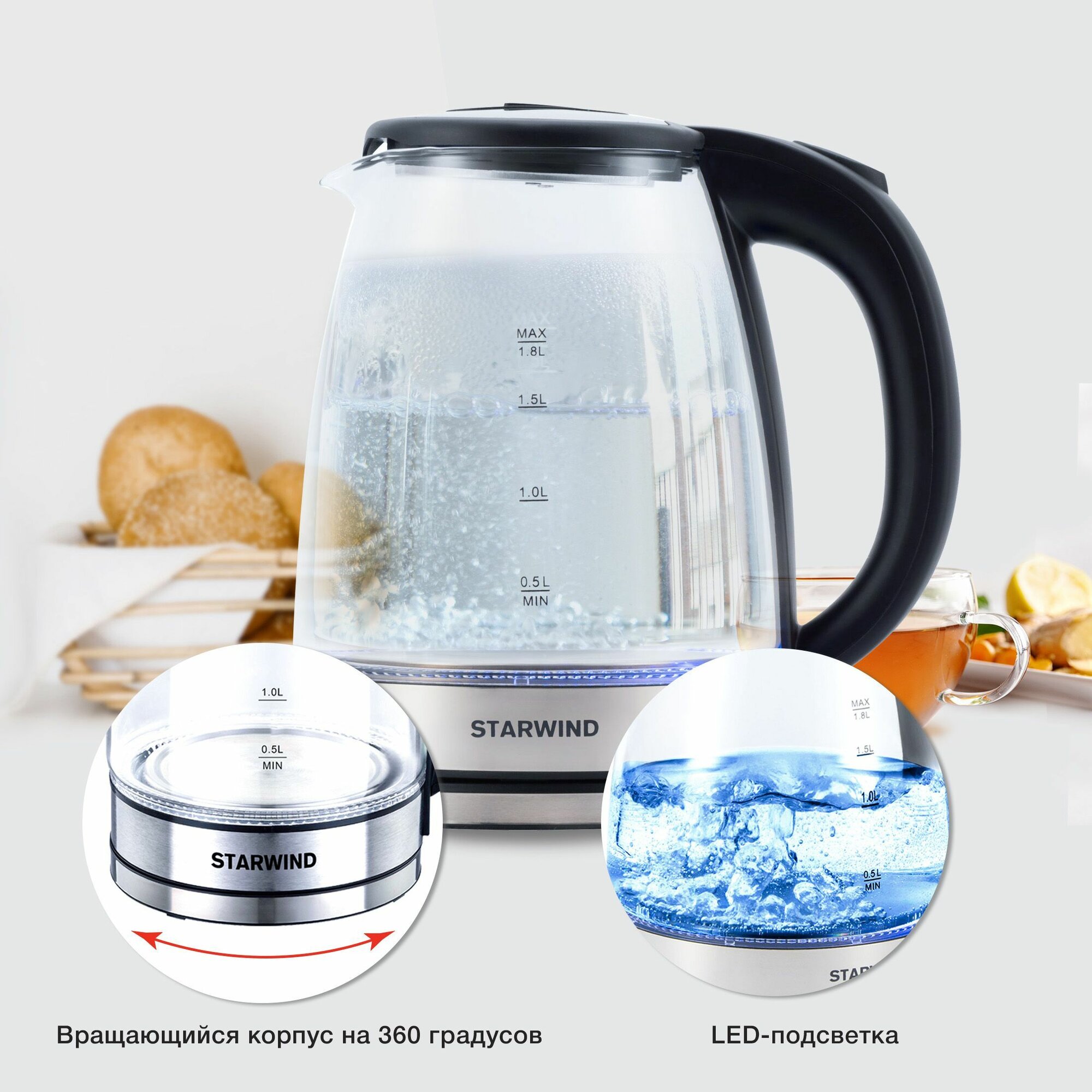Чайник Starwind SKG4777 1.8л. 2000Вт черный/прозрачный (стекло) интересное: