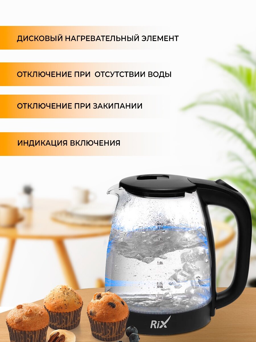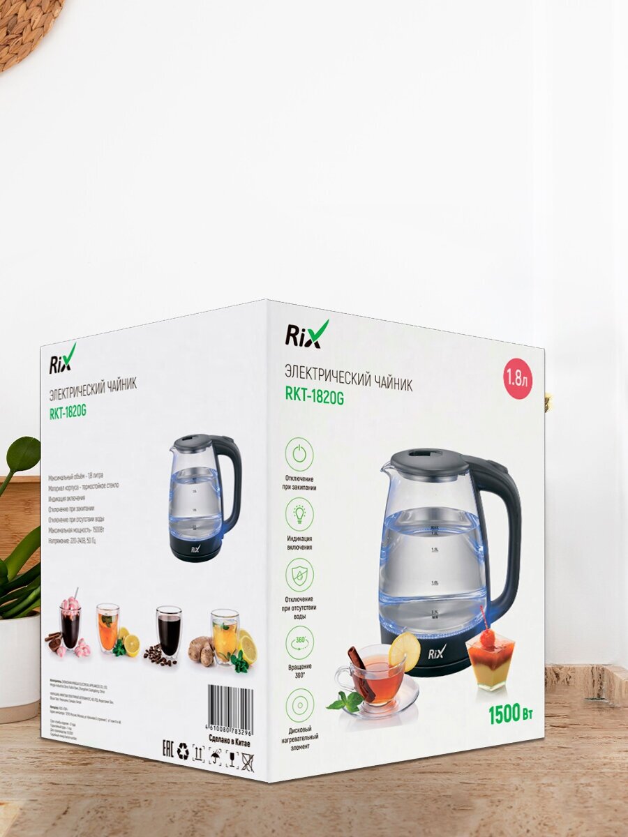 Чайник электрический RIX 1,8л стеклянный корпус RKT-1820G интересное: