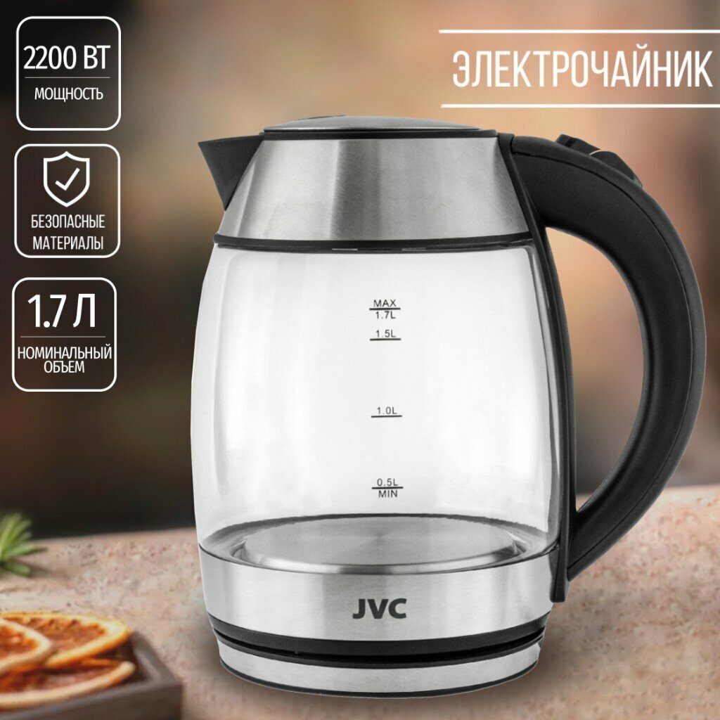 Чайник электрический JVC JK-KE1707, 2200 Вт, 1,7 л, стекло/пластик