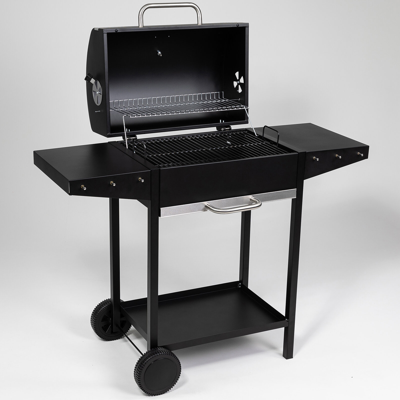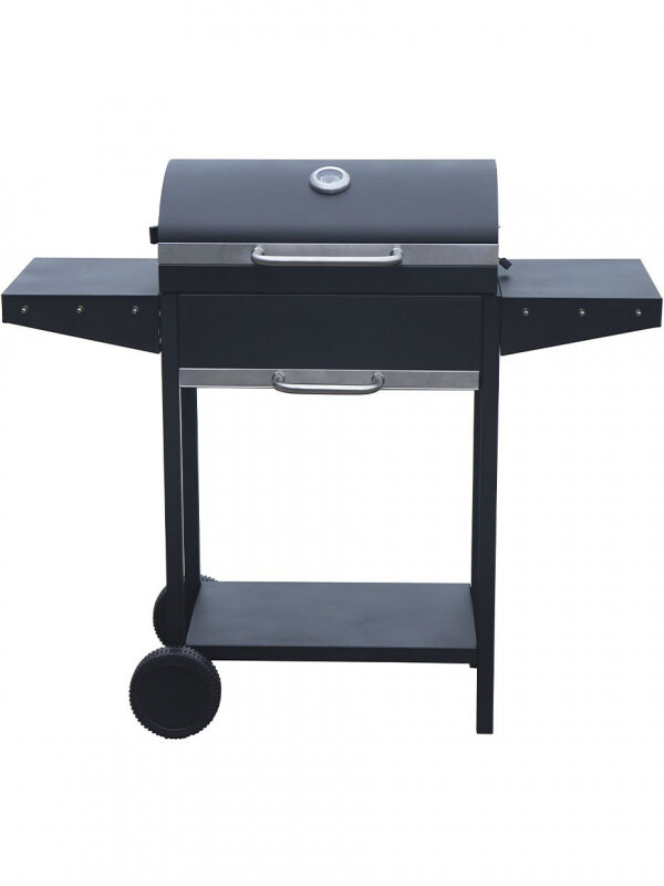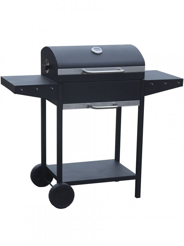 -Пластиковые колёса -Хлипкая конструкция -Нет фиксации крышки в разных положениях, то есть нельзя прикрыть -Быстро пришла в негодность поддон для угля |