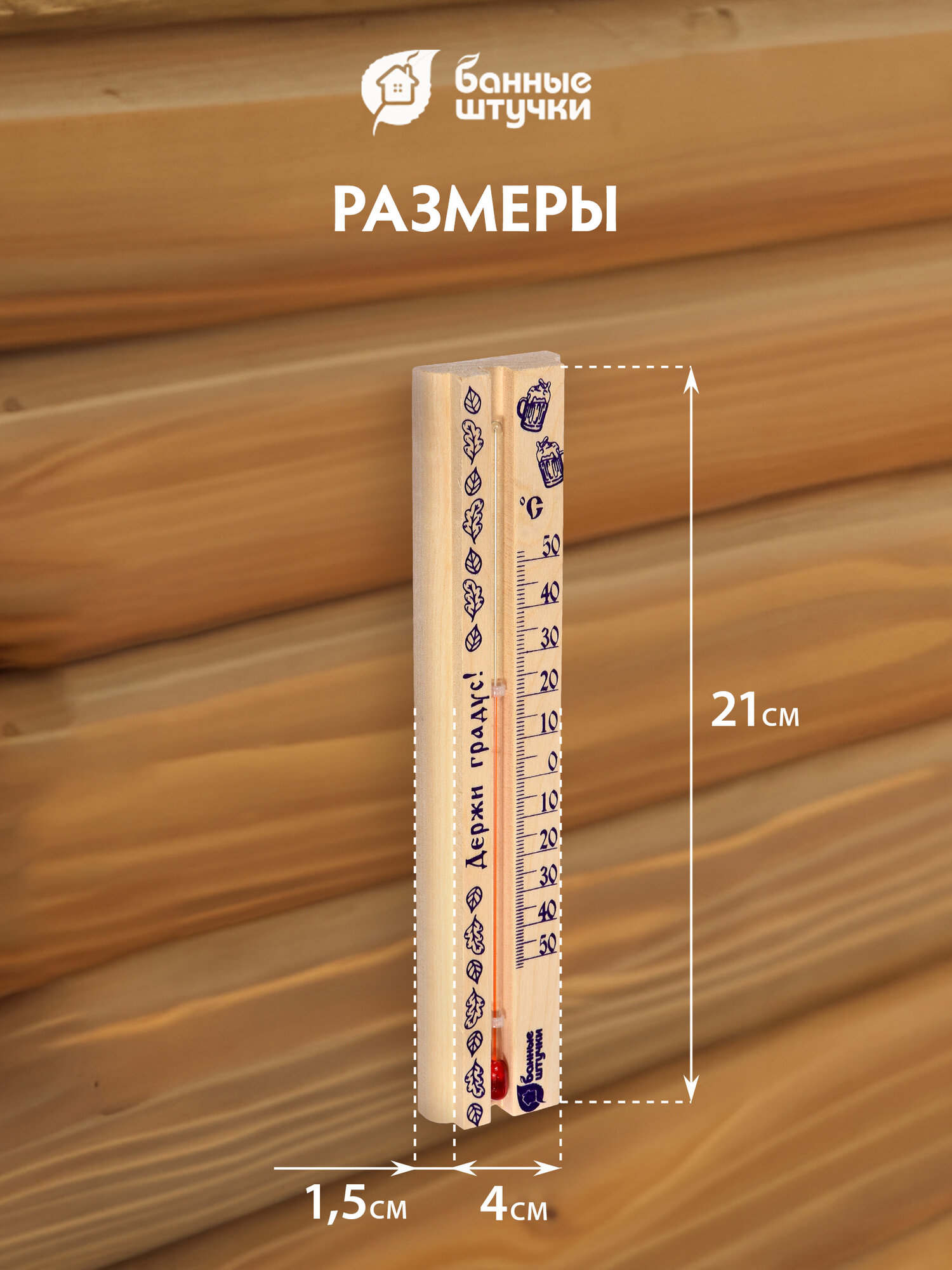 Купить Термометр "Держи градус!" 21x4x1,5 см в предбанник "Банные штучки" дерево/комнатный/настенный/с рисунком
