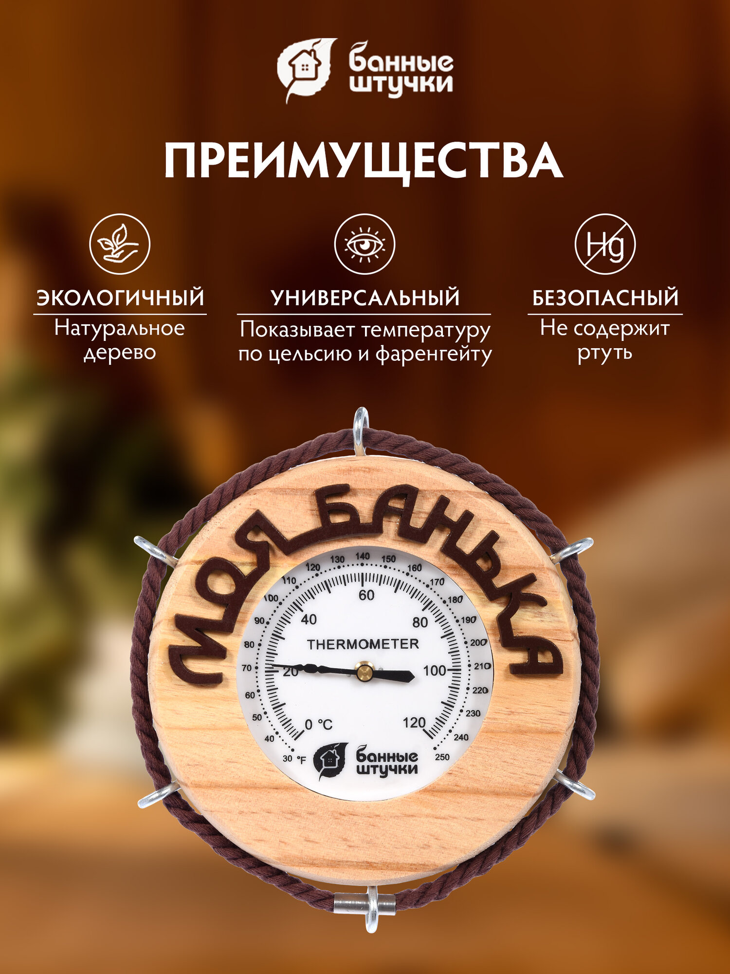 Термометр "Моя банька", 14х14х2 см, для бани и сауны "Банные штучки" дерево/комнатный/настенный/с рисунком интересное: