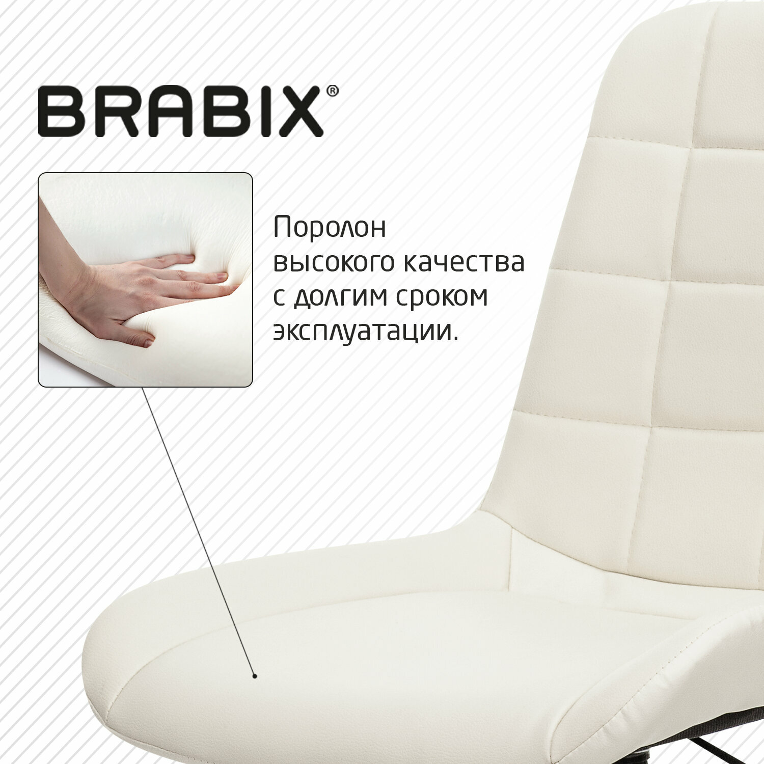 Купить Кресло BRABIX "Deco MG-316", без подлокотников, пятилучие серебристое, экокожа, слоновая кость, 532081