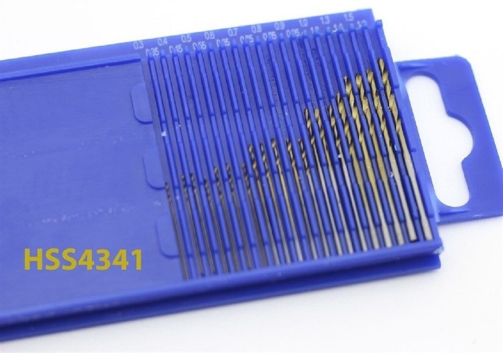 Купить 4274 JAS Мини-сверла, диаметр 0,3 - 1,6 мм, набор, 20 шт., HSS 4341, нитрид-титановое покрытие