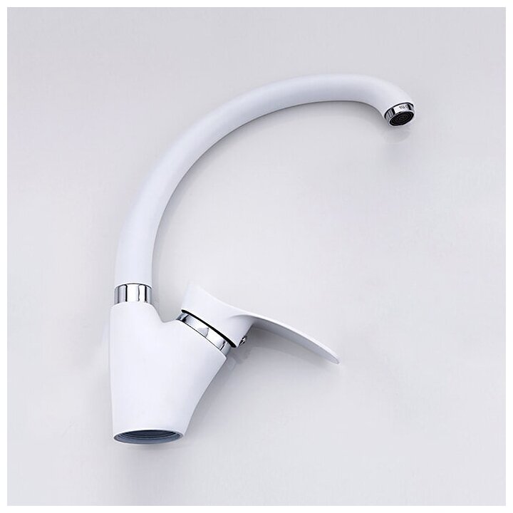 Смеситель белый для кухни, излив высокий, поворотный, однорычажный