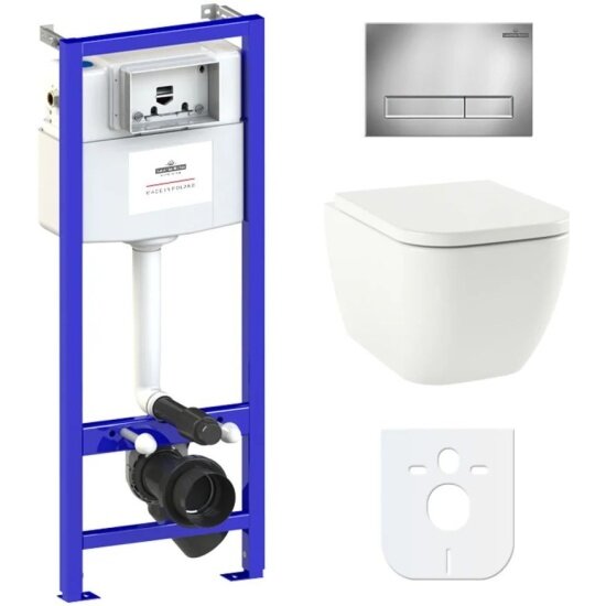 Berges Wasserhaus Комплект унитаза с инсталляцией Berges Wasserhaus Novum Rimless 043266 с сиденьем Микролифт и Белой клавишей смыва