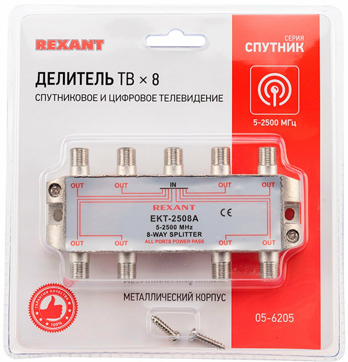Делитель REXANT, ТВ х 8 под F разъём 5-2500 МГц спутник 05-6205