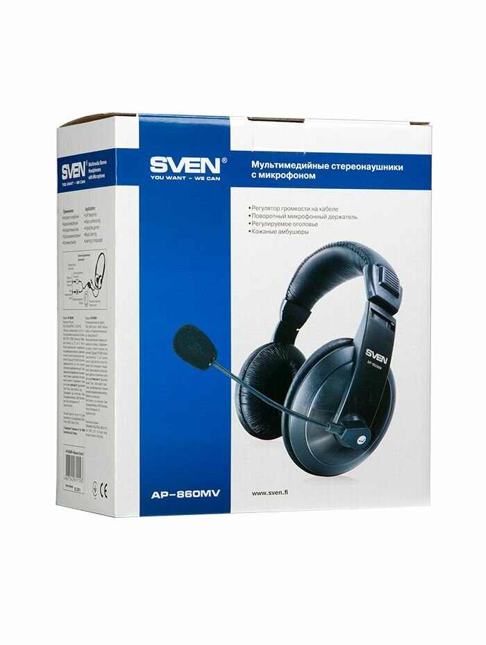 SVEN AP-860MV с регулятором громкости, мягкие, синт. кожа микрофон