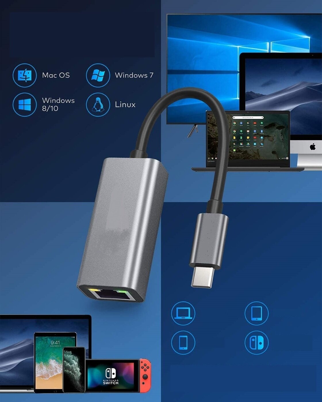 Адаптер KS-is USB-C Gigabit LAN KS-398 интересное: