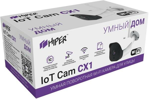 HIPER Smart camera HIPER IoT Cam CX1/Умная фиксированная Wi-Fi камера для улицы/Wi-Fi/RJ-45/micro-SD до 128Гб/AVCHD 720p/AC 100-250V; DC 5V/1.6A/снаружи помещений/IoT Cam CX1