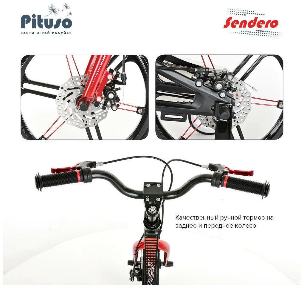 Велосипед двухколесный Pituso Sendero 18" Black/Черный с дополнительными колесами подарок для девочки для мальчика