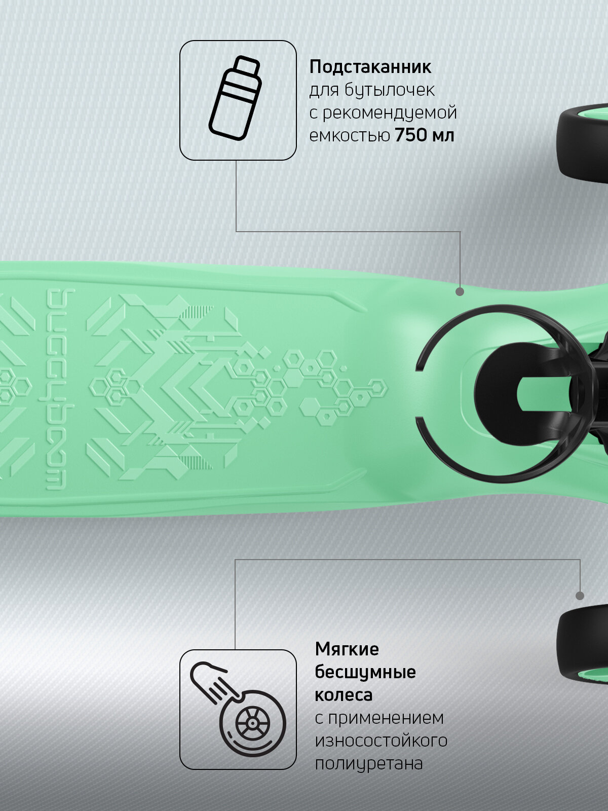 СохранитьСамокат, самокат трехколесный детский, с корзинкой и подстаканником для бутылок, Buggy Boom Alfa Mini, фисташковый интересное: