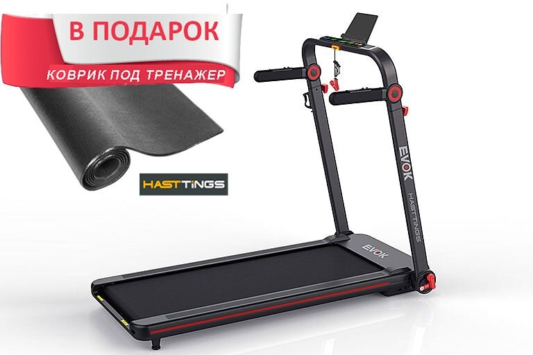 Беговая дорожка Hasttings EVOK - складная/ до 110 кг/ до 300 ккал за 1 ч/суперкомпактная/ 1,5 л.с/ 36 программ/ модуль охлаждения двигателя