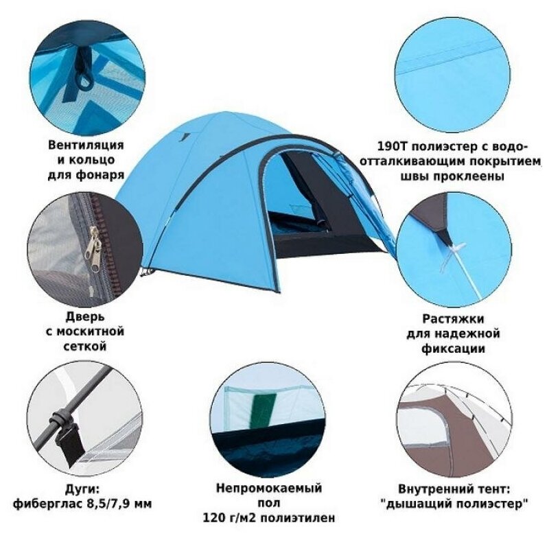 | Комплектация | возможность крепления фонарика / противомоскитная сетка / штормовые оттяжки |