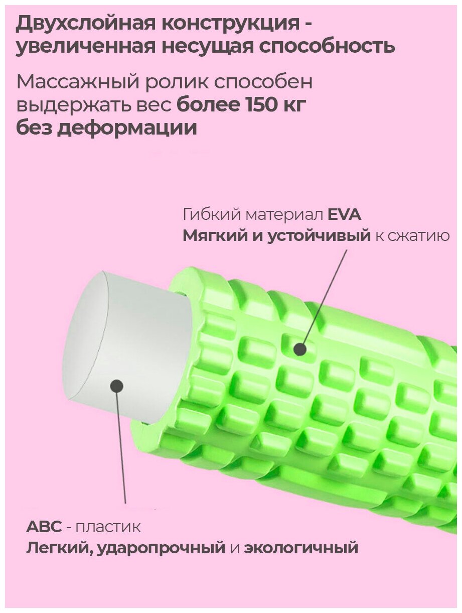 Купить Ролик массажный, двусторонний, шипы, полоски 33x14 см, зелёный, для йоги, фитнеса и МФР