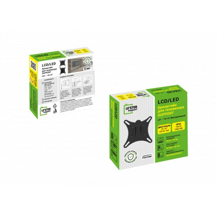 Кронштейн для телевизора фиксированный LE'STER настенный, для диагонали 10 - 32 дюйма, до 25 кг, VESA 100x100 мм, 75x75 мм